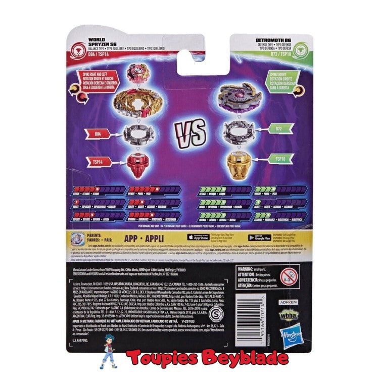 World Spryzen S6 Et Betromoth B6 | Toupies Beyblade : l’équipement parfait pour les compétitions de Beyblade.